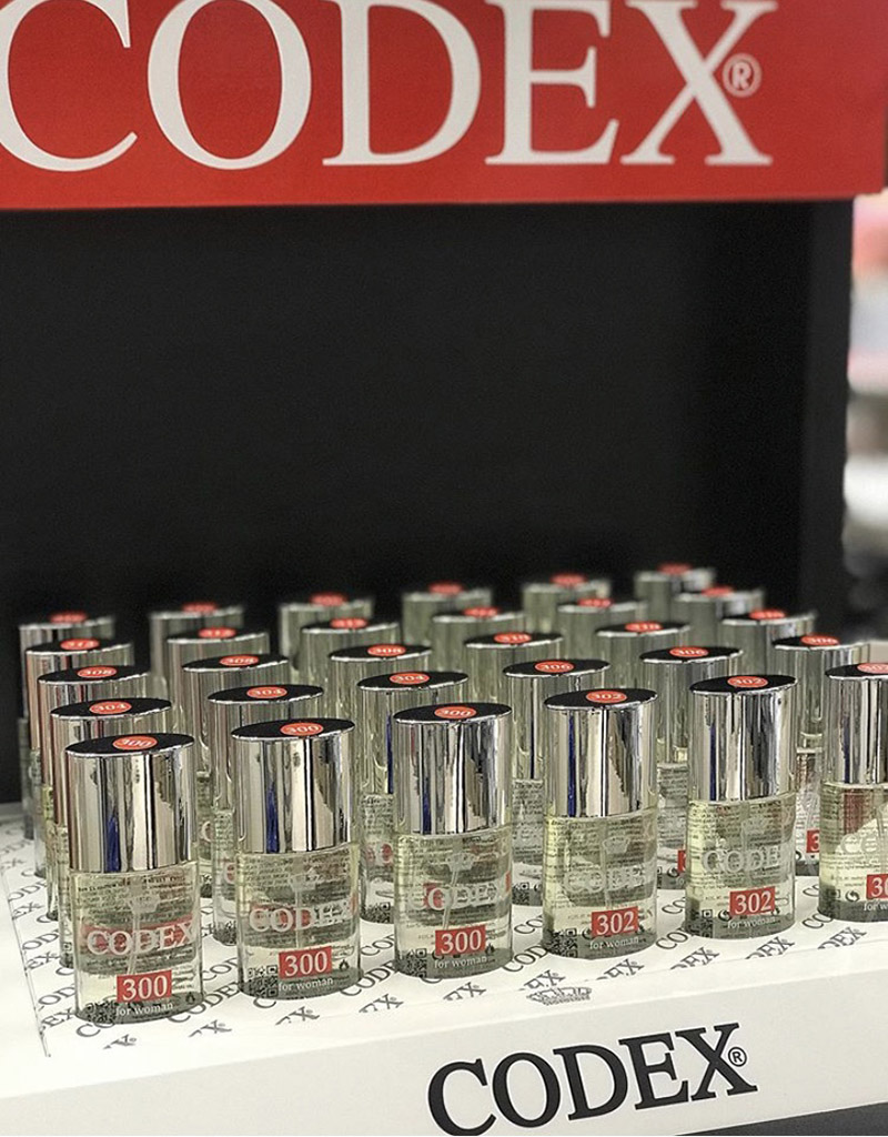Naš proizvod, kao i jedini cilj naše kompanije, se sastoji od najkvalitetnijih mirisnih nota i kompozicija koje čine vrhunske parfeme. Ambalaža, izrađena od vrhunskog stakla i metaliziranim poklopcem, rađeno po codexovim zahtevima, koja daje utisak luksuza, i prestiža koji bi svako poželeo.